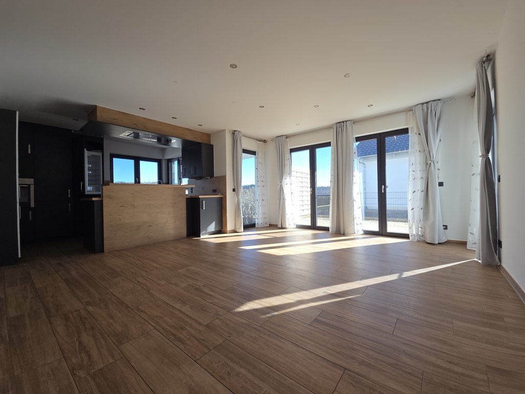Herzstück der Wohnung ist der helle, rund 28 m² große Wohn- und Essbereich mit direktem Zugang zur angrenzenden Küche sowie der Terrasse und dem Garten. Die offene Gestaltung schafft eine angenehme Wohnatmosphäre und bietet ausreichend Platz für einen großen Esstisch sowie eine komfortable Sofalandschaft.
