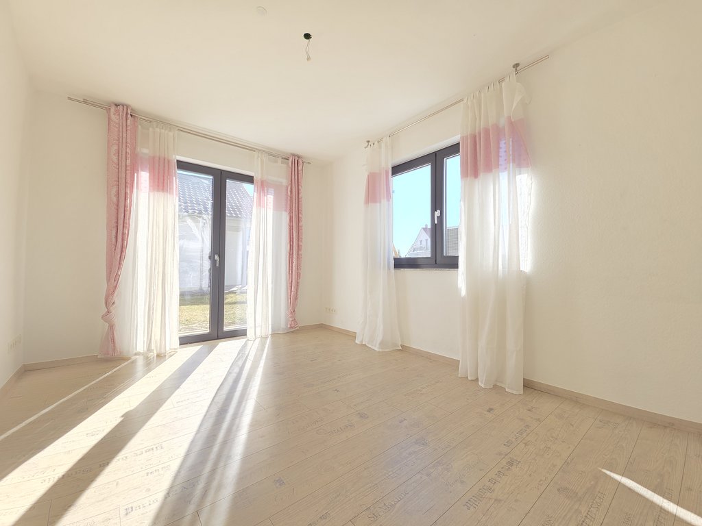 Der private Bereich umfasst ein Schlafzimmer sowie zwei gut geschnittene Kinderzimmer. Ein Tageslichtbad mit Whirlpool-Badewanne und Dusche bietet ausreichend Platz für die ganze Familie. Ergänzt wird das Raumangebot durch ein separates WC.