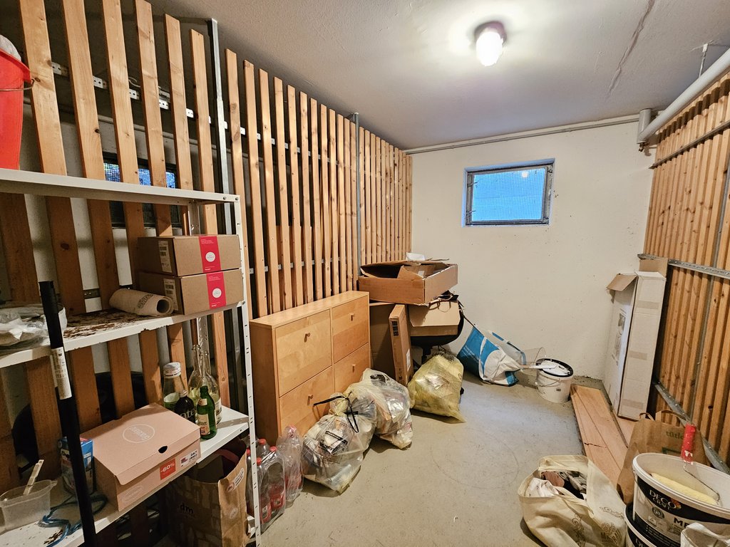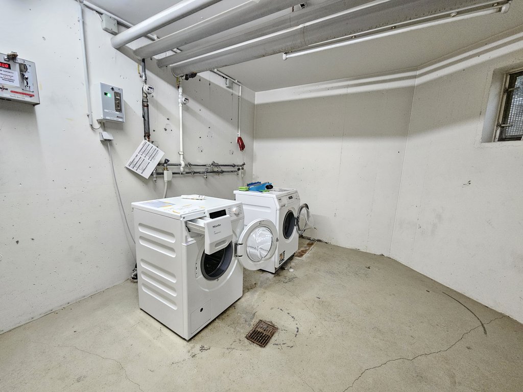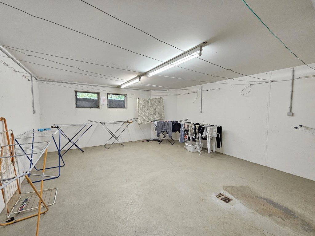 Im Keller befindet sich eine gemeinschaftliche Waschmaschine mit Münzeinwurf sowie ein Trockenraum zum Aufhängen der Wäsche. Ein separater Kellerabstellraum bietet zusätzlichen Stauraum, und ein Kfz-Außenstellplatz rundet das attraktive Angebot ab.