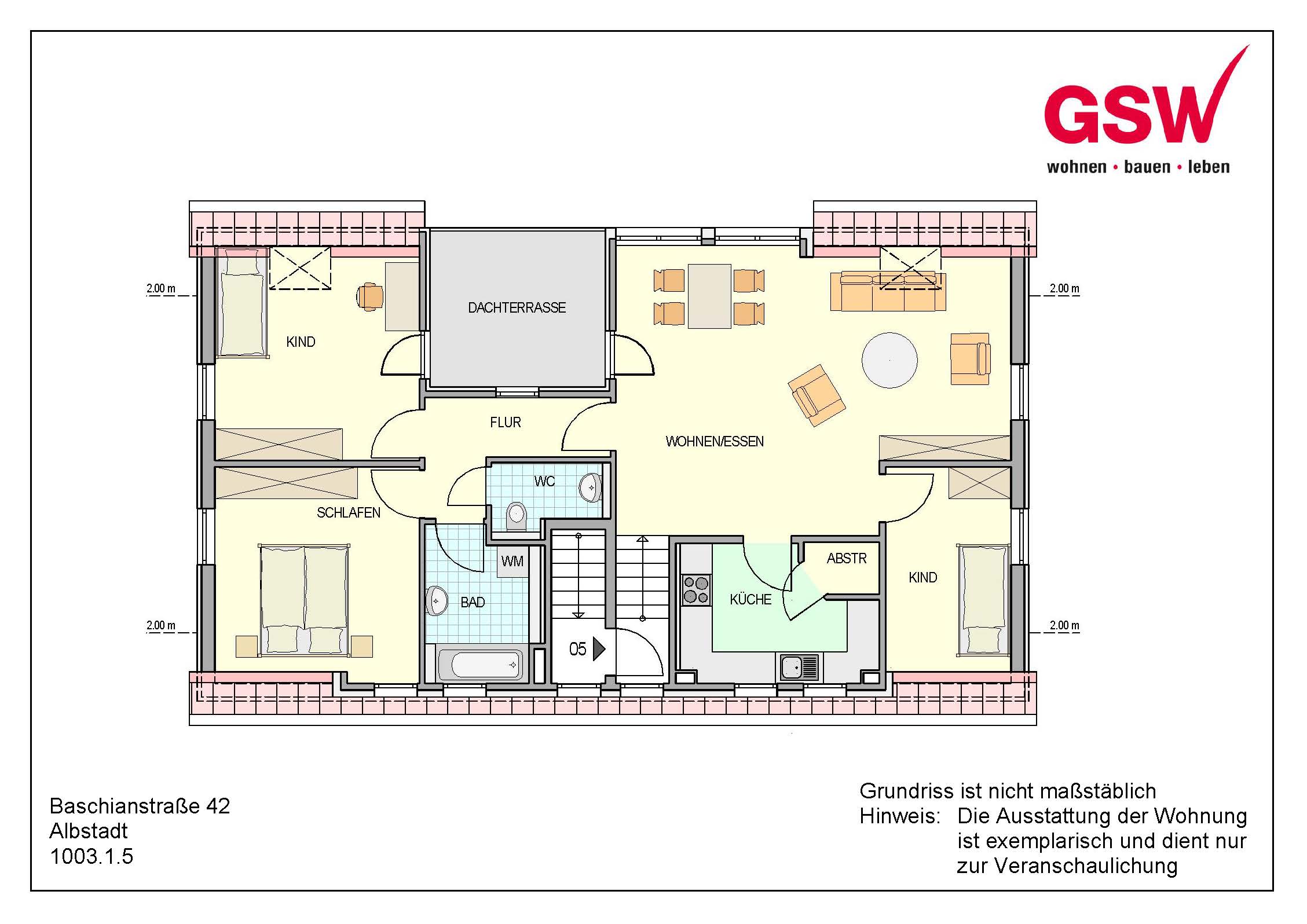 Die lichtdurchflutete 4-Zimmerwohnung liegt im 2. Obergeschoss (Dachgeschoss) eines Mehrfamilienhauses mit nur fünf Wohnungen.