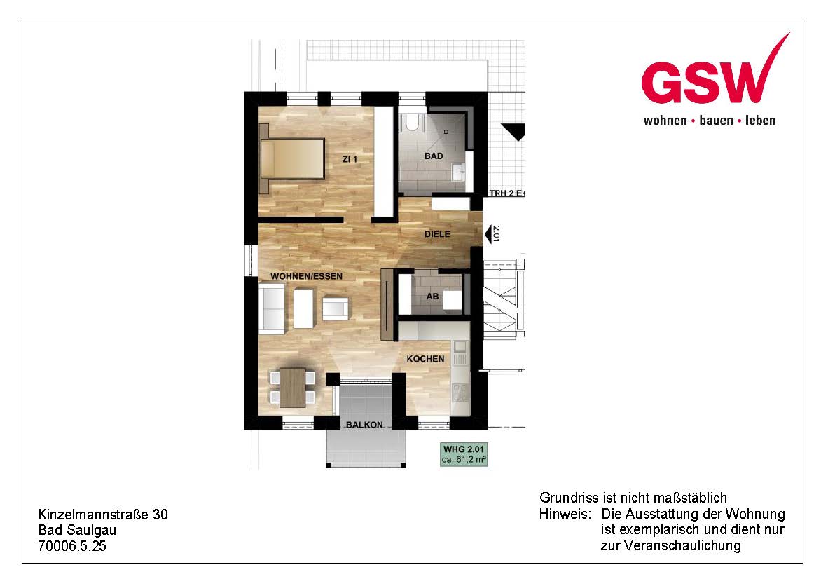 Der offen gestaltete Wohn- und Essbereich bildet das Herzstück der Wohnung und bietet direkten Zugang zum Balkon, der sich harmonisch zwischen Küche (ohne Einbauküche) und Wohnraum einfügt. Große Fensterflächen sorgen für eine helle, freundliche Atmosphäre und lassen die Räume offen und einladend wirken. Die moderne, barrierearme Ausstattung erfüllt zeitgemäße Wohnansprüche.