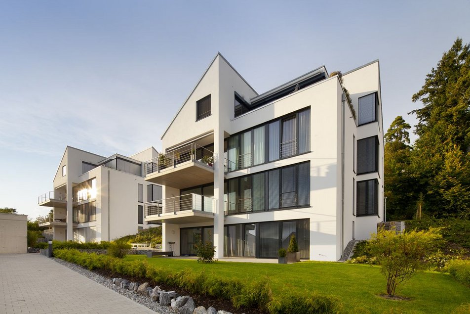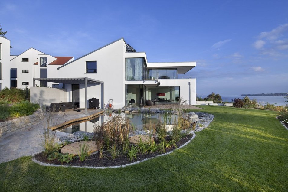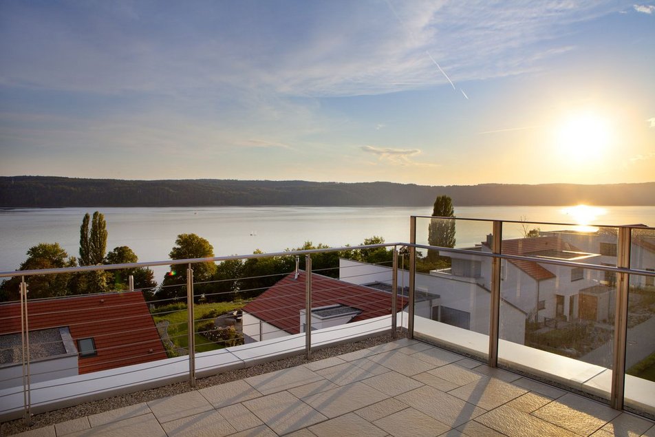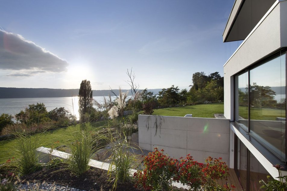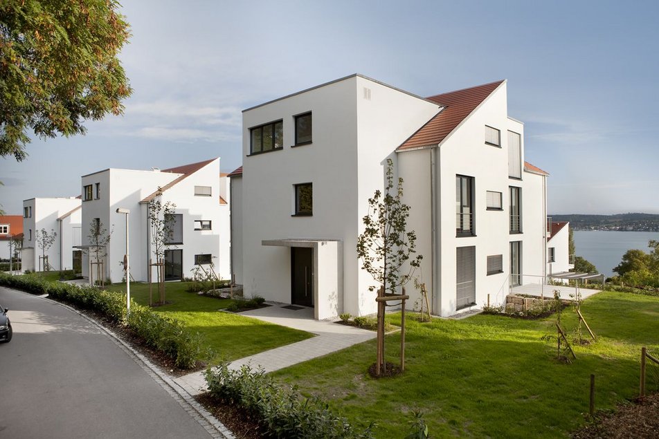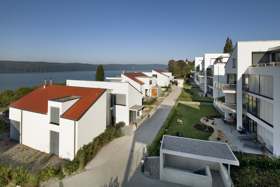 Bereits die Architektur der Wohnanlage, die sich aus zwei großzügigen Stadtvillen und vier Einfamilienhäusern in Doppelhausausführung an den Klippen hin zum See sowie aus vier Mehrfamilienhäusern mit je vier Eigentumswohnungen an der Goldbacher Straße zusammensetzt, verleit der Anlage einen ganz besonderen Charme: Die großen Fensterflächen zum See betonen den offenen Charakter der Häuser nach außen und schaffen nach innen eine lichtdurchflutete Wohnatmosphäre, in welcher man sich sofort wohlfühlt. Große Terrassen und Balkone werden zum zusätzlichen Freiluftzimmer und unterstreichen den offenen Charakter der Anlage zusätzlich. Die Sicht auf den Bodensee ist einmalig und unverbaubar. Wer hier wohnt, erlebt höchsten Wohnkomfort mit besten Perspektiven.