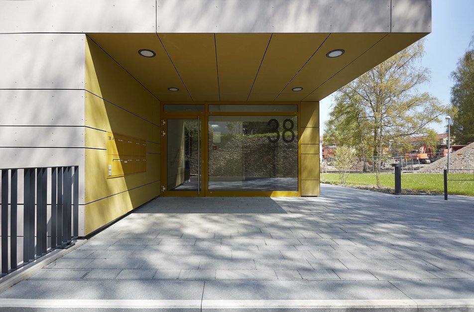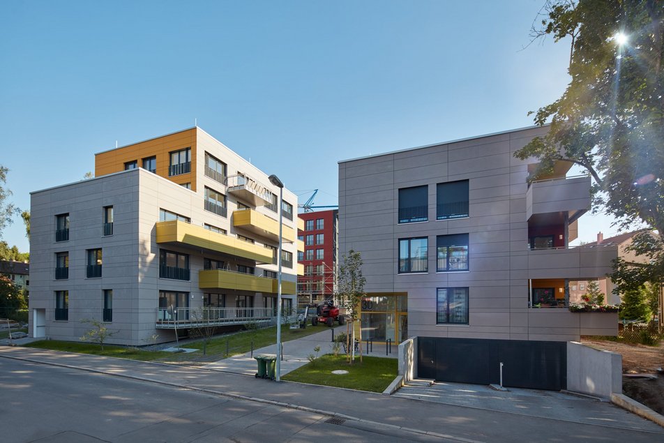 Architektonisch greifen die drei- bis sechsstöckigen Gebäude den Siedlungscharakter auf, verleihen ihm jedoch durch die Höhenstaffelung und versetzte Anordnung einen lebendigen Charme.