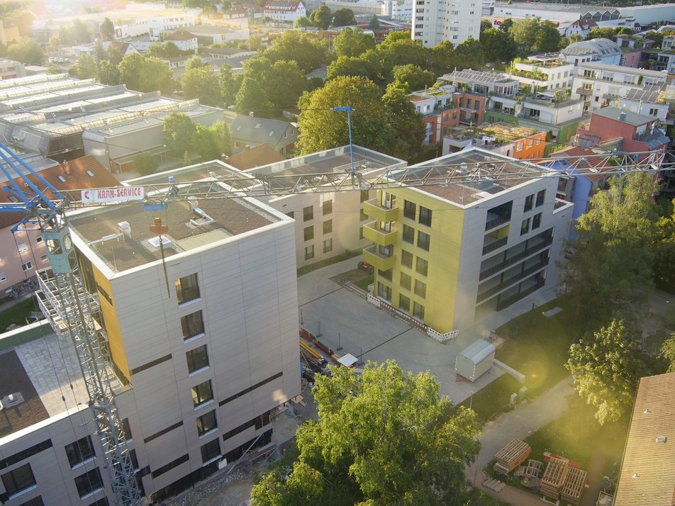 Die Wohnungen sind zum großen Teil barrierearm und teilweise rollstuhlgerecht gestaltet. Alle 55 Wohnungen des ersten Bauabschnitts verfügen über Terrasse, Dachterrasse, Balkon oder Loggia und überzeugen mit einer hochwertigen Ausstattung. Dank öffentlicher Förderung können wir diese Wohnungen überwiegend deutlich unter den ortsüblichen Mieten anbieten.