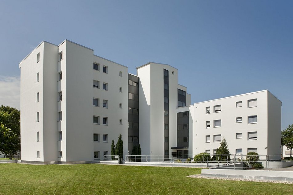 In 2010 wurde die aufwändige energetische Modernisierung unseres Hauses Rheinauer Ring 123 mit 32 Wohnungen in Rastatt abgeschlossen. Zu den Maßnahmen zählten der Einbau wärmegedämmter Kunststofffenster, das Aufbringen eines Vollwärmeschutzes, die damit verbundene Flachdachsanierung sowie die Installation einer neuen effizienten Heizungsanlage. Außerdem wurden alle Balkone saniert. Besonders erfreulich für die Mieter ist, dass auf dem Dach Solarkollektoren zur Brauchwassererzeugung installiert wurden, was zusätzlich dazu beiträgt, teure Wärmeenergie zu sparen. Darüber hinaus wurden nach Abschluss der Maßnahmen die Außenanlagen neu angelegt.